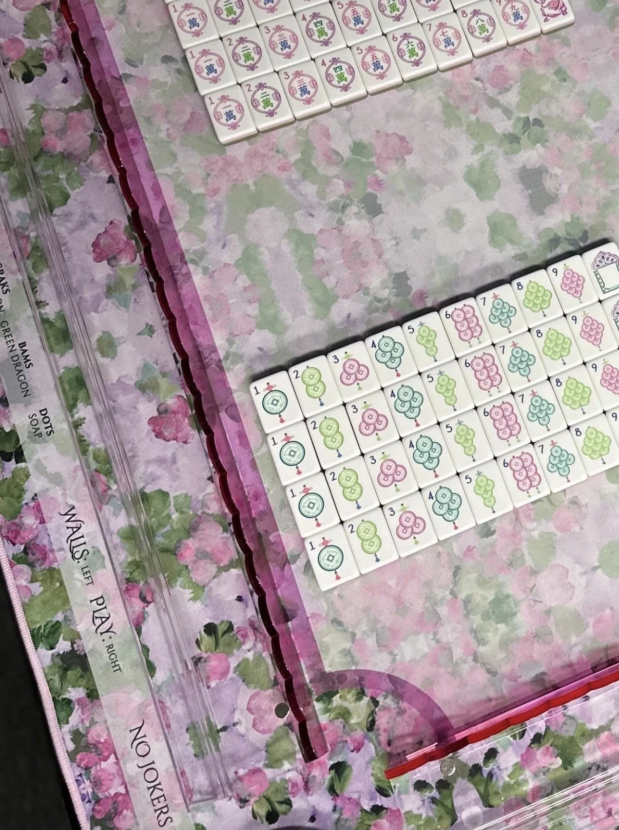 Bama Mahj also sells gorgeous racks and pushers and their pushers fit the Mahj Mood racks! In the photo above I show Bama Mahj’s pink pushers with the Serenity mat. I just adore this pairing. I can’t wait to see the new pushers that both companies release.